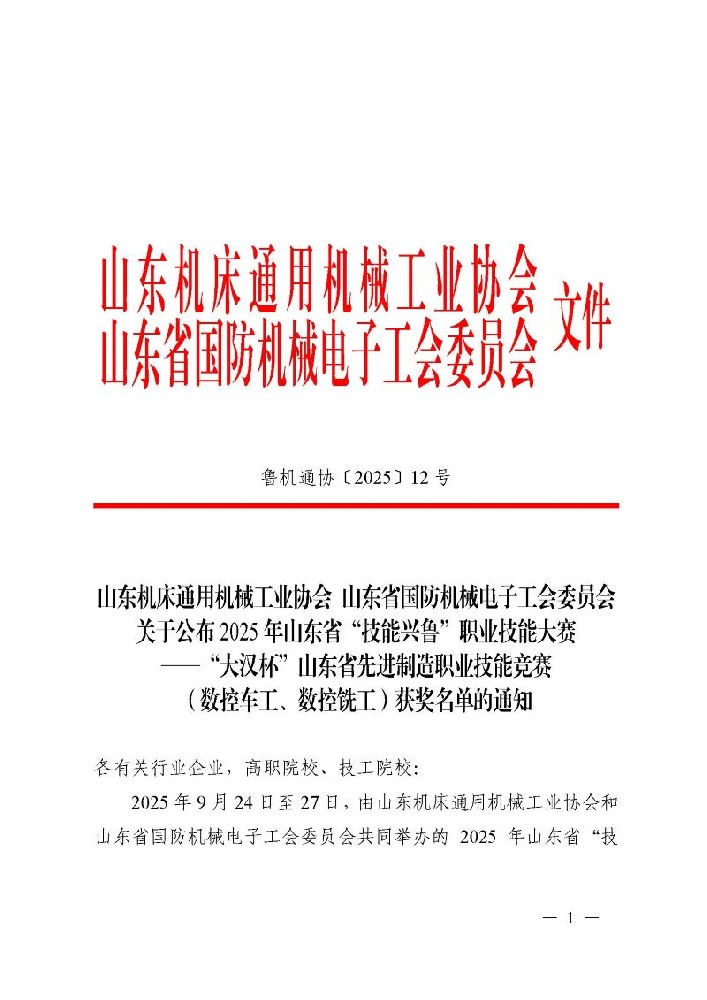 山東省先進(jìn)制造職業(yè)技能競賽(數(shù)控車工、數(shù)控銑工)獲獎(jiǎng)通知.p···…